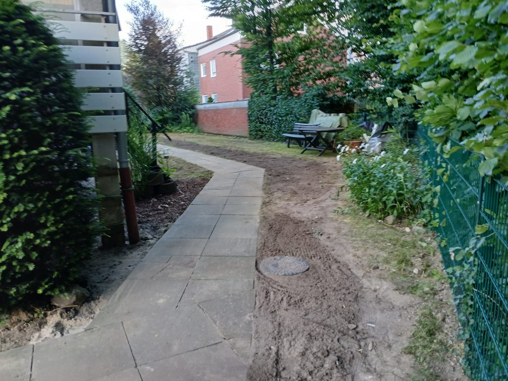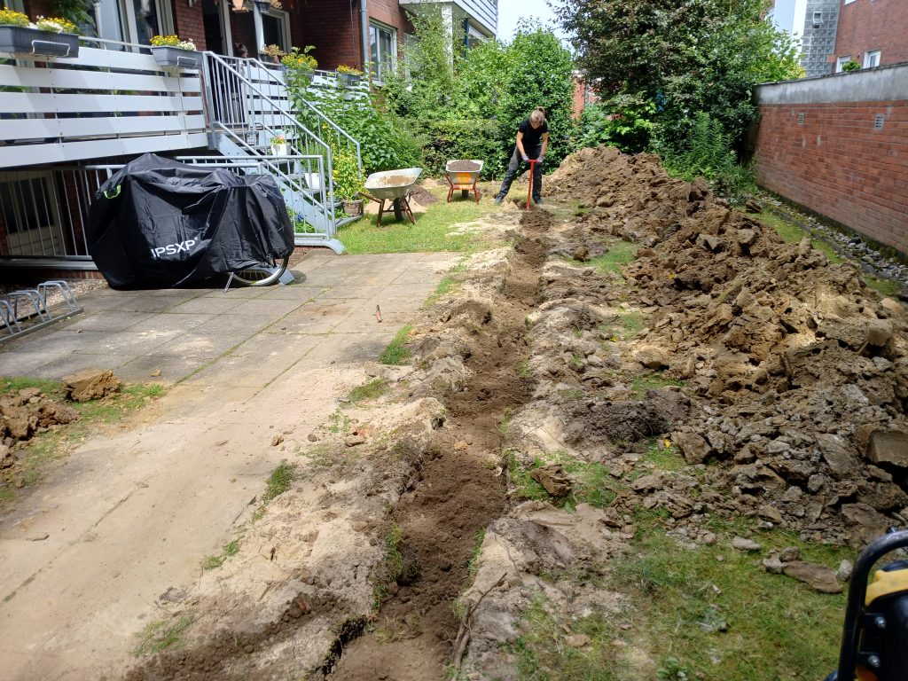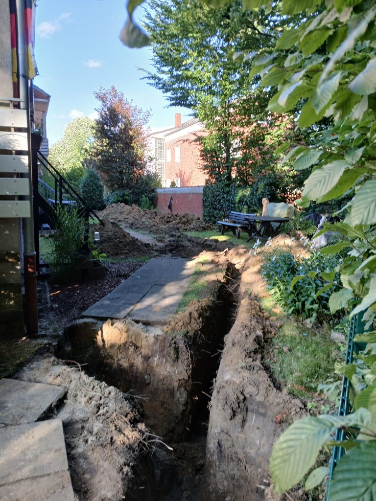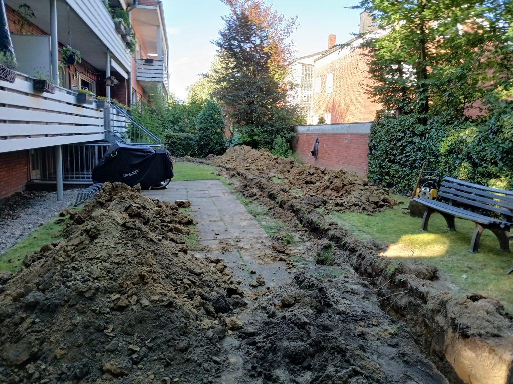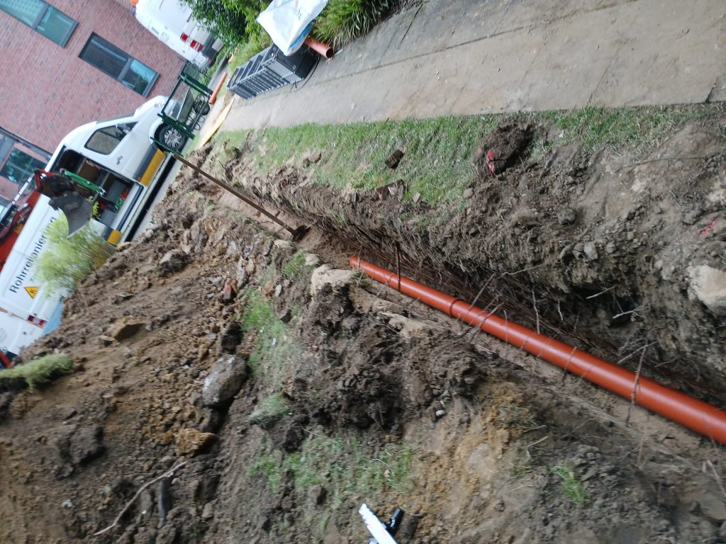 Hier wurde die gesamte Regenwasser Ableitung ersetzt, da die alte Tonleitung ständig verstopfte. Die Neuverlegung konnte unkompliziert durchgeführt werden.