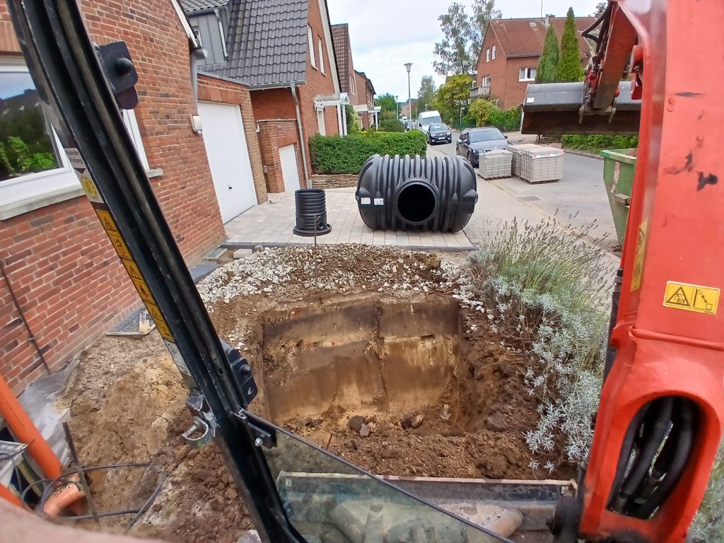 Entdecken Sie die Vorteile nachhaltiger Wassernutzung mit unserem professionellen Zisternen Einbau-Service. Wir bieten umfassende Lösungen für die Installation und Neugründung von Zisternen und Wasserspeichern. Von der Planung über die Vorbereitung und den Einbau bis zum Anschluss von Zu- und Abläufen sowie Pumpen und Filtern – vertrauen Sie auf unsere Expertise, um effizient Wasser zu sammeln, zu speichern und nachhaltig zu nutzen.